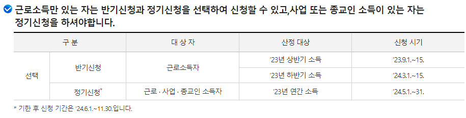 ⊙ 24년 귀속 상반기분 신청기간은 9월 1일 ~9월 19일