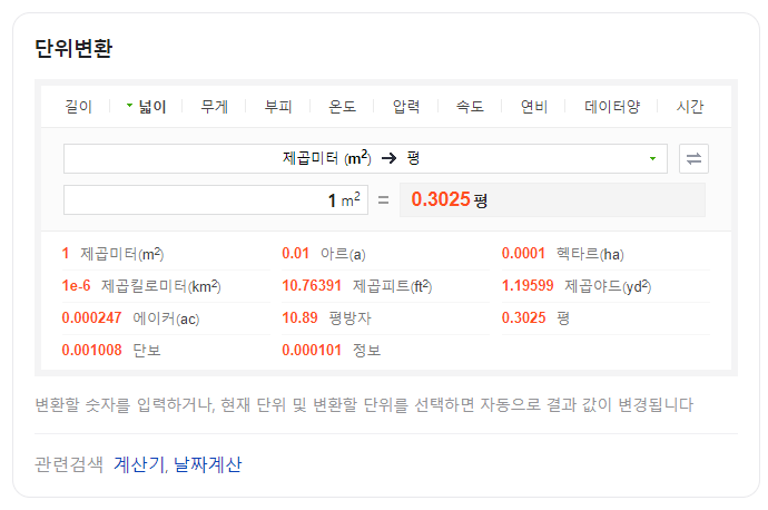 제곱미터를 평으로 변환할 때 가장 간단한 방법 중 하나는 온라인 계산기를 사용하는 것입니다.